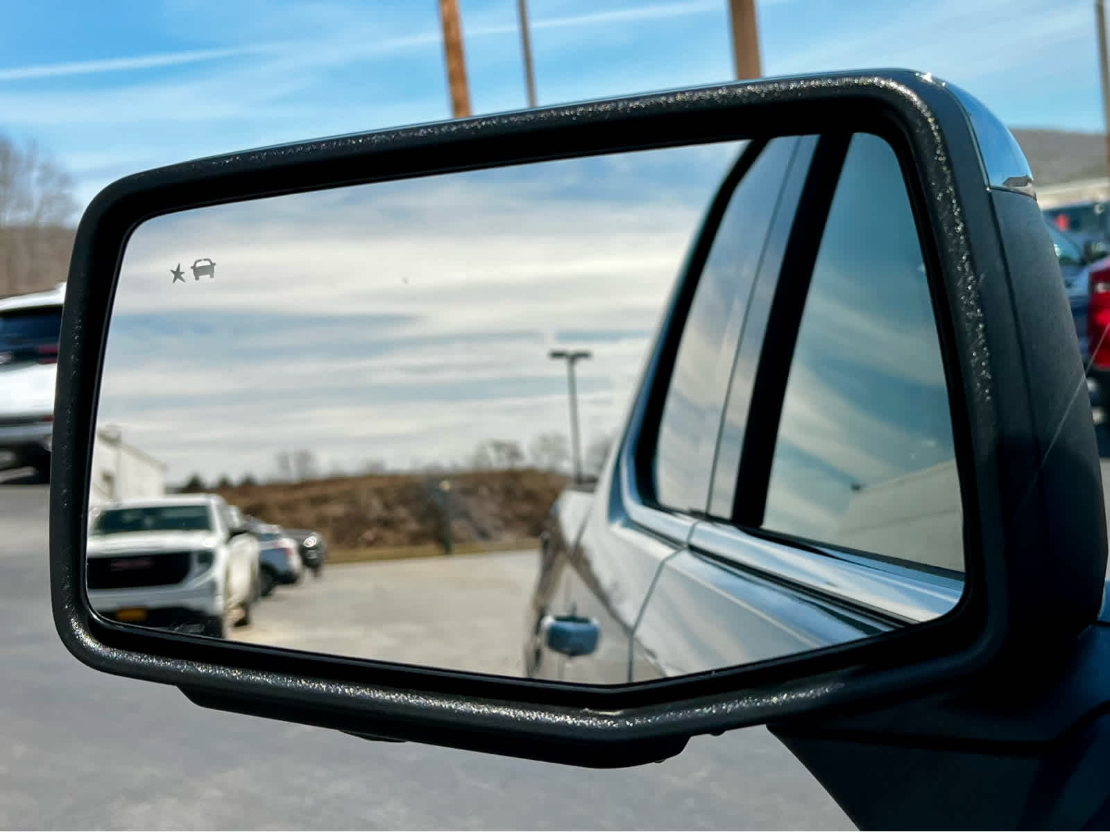 - Provides visual side-mirror alerts when a moving vehicle is detected in a side blind zone that is extended to trailer lengths1