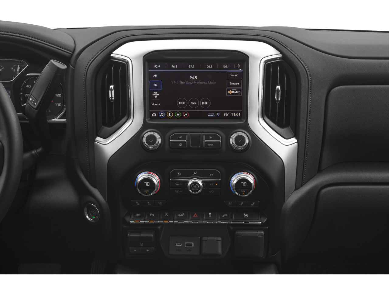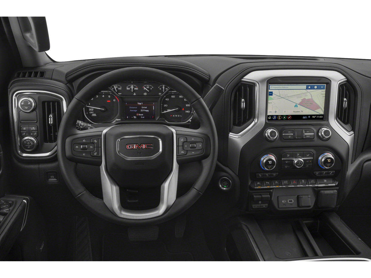 SLT PREMIUM PLUS PACKAGE includes (PCY) SLT Convenience Package, (PDY) SLT Preferred Package, (PQB) Driver Alert Package I, (PDJ) Driver Alert Package II, (NZM) 20" Polished aluminum wheels, (PTT) Trailer Tire Pressure Monitor System, (BVT) Chrome assist steps and (CGN) spray-on bedliner. LPO, 22" (55.9 CM) BRIGHT CHROME WHEELS LPO wheels will come with 4 steel 22" wheels from the factory with alignment specs set to 22" LPO wheel selected, SLT CONVENIENCE PACKAGE includes (A50) bucket seats with (D07) center console, (KQV) ventilated front seats, (A48) rear sliding power window, (UG1) Universal Home Remote, (MCZ) 2 USB ports with auxiliary input; Crew Cab models also include (KA6) rear heated seats, SLT PREFERRED PACKAGE includes (IOT) 8" diagonal Premium GMC Infotainment with navigation, (UQA) Bose Premium Audio System and (K4C) Wireless Charging, SUNROOF, POWER, DRIVER ALERT PACKAGE I includes (UD5) Front and Rear Park Assist, (UKC) Lane Change Alert with Side Blind Zone Alert and (UFG) Rear Cross Traffic Alert (Includes Perimeter Lighting. Includes (V76) recovery hooks on 2WD models. DRIVER ALERT PACKAGE II includes (UEU) Forward Collision Alert, (UHX) Lane Keep Assist/Lane Departure Warning, (UHY) Low Speed Forward Automatic Braking, (UKJ) Front Pedestrian Braking, (TQ5) IntelliBeam headlamps and (UE4) Following Distance Indicator Includes (HS1) Safety Alert Seat. AUDIO SYSTEM, PREMIUM GMC INFOTAINMENT SYSTEM WITH NAVIGATION AND 8" DIAGONAL COLOR TOUCH-SCREEN, INCLUDES MULTI-TOUCH DISPLAY, AM/FM STEREO Bluetooth® streaming audio for music and most phones; featuring Android Auto® and Apple CarPlay® capability for compatible phones, advanced voice recognition, in-vehicle apps, personalized profiles for infotainment and vehicle settings. Includes greater memory, SEATS, HEATED SECOND ROW OUTBOARD SEATS, ENGINE, 5.3L ECOTEC3 V8 (355 hp [265 kW] @ 5600 rpm, 383 lb-ft of torque [518 Nm] @ 4100 rpm); featuring all-new Dynamic Fuel Management that enables the engine to operate in 17 different patterns between 2 and 8 cylinders, depending on demand, to optimize power delivery and efficiency (STD), TRANSMISSION, 8-SPEED AUTOMATIC, ELECTRONICALLY CONTROLLED with overdrive and tow/haul mode. Includes Cruise Grade Braking and Powertrain Grade Braking (STD).