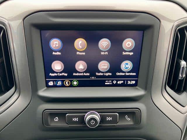 includes (BTV) Remote Start with (UTJ) content theft alarm, (KI4) 120-volt power outlet, (KC9) 120-volt bed-mounted power outlet, (UBI) 2 charge-only USB ports for second row, (C49) rear-window defogger, (A2X) 10-way power driver seat including power lumbar, (UF2) bed LED cargo area lighting, (QT5) EZ Lift power lock and release tailgate (Included with (PDX) Custom Value Package. Beginning with the start of production certain vehicles will be forced to include (RFO) Not Equipped with USB ports rear.), (dealer-installed), 1st and 2nd rows on Crew Cab and Double Cab, (includes Chevrolet Bowtie logo on front mats), 7" diagonal HD color touchscreen, AM/FM stereo, Bluetooth® audio streaming for 2 active devices, voice command pass-through to phone, Wireless Apple CarPlay® and Wireless Android Auto® compatibility (STD), with Direct Injection and Variable Valve Timing, gasoline, (401 hp [299 kW] @ 5200 rpm, 464 lb-ft of torque [629 N-m] @ 4000 rpm) (STD), (STD).